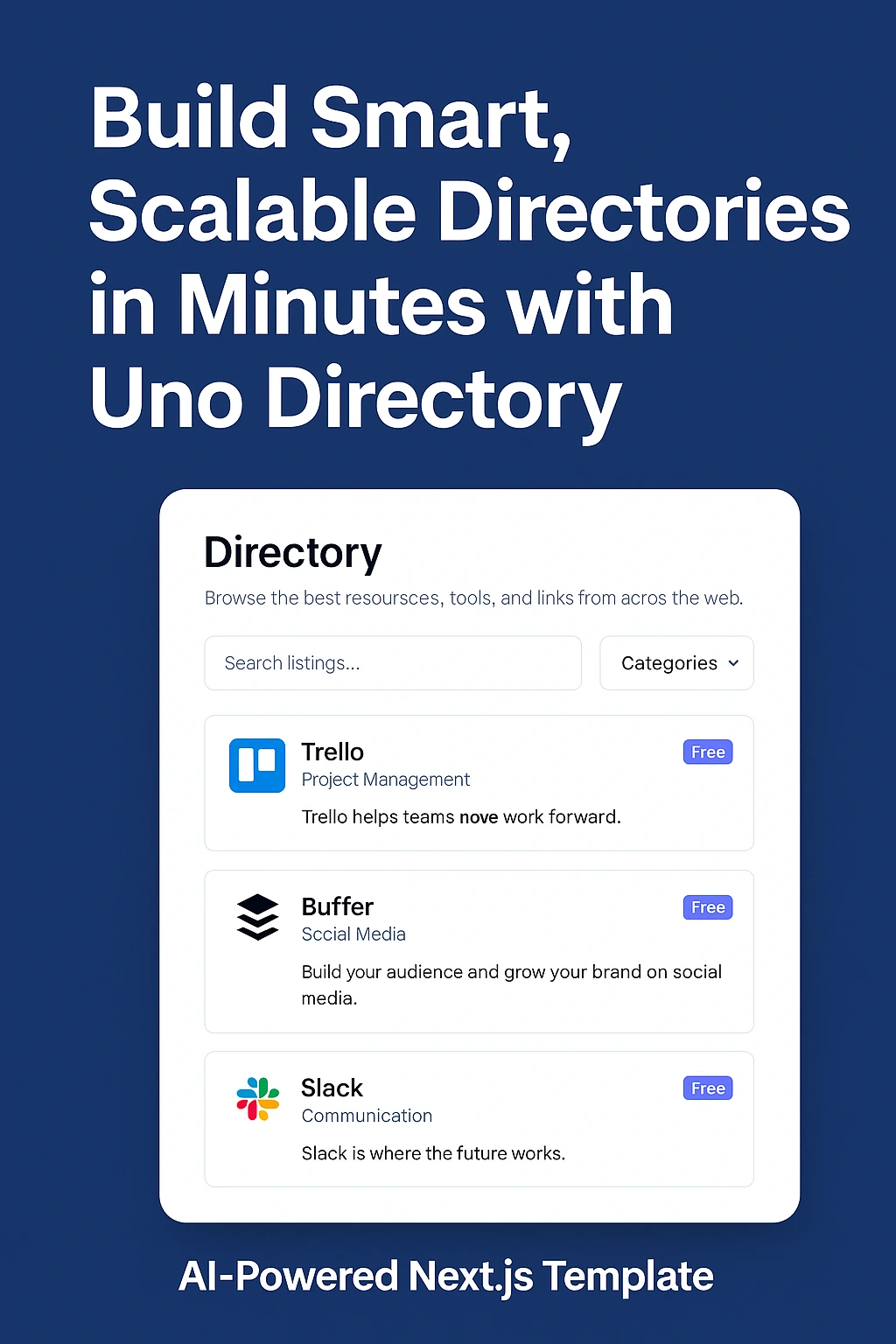 If you’ve ever tried to build a directory website — whether for local businesses, digital products, or job listings — you already know the pain. Clunky WordPress plugins. Slow themes. Endless customization hassles. Now imagine skipping all of that and launching a lightning-fast, AI-powered directory in hours, not weeks. That’s where Uno Directory steps in — a sleek, developer-friendly Next.js template designed to help creators and businesses build beautiful, scalable directories effortlessly.