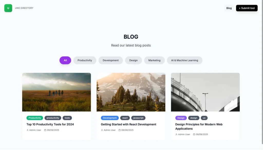 Uno Directory’s design system is clean, minimal, and modern — perfect for tech, startup, or creative audiences. Benefit: You get a premium look without hiring a designer.